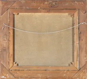 Na odwrocie, na górnej i dolnej listwie krosna pieczęć z numerem odnoszącym się do wielkości podobrazia; 80.