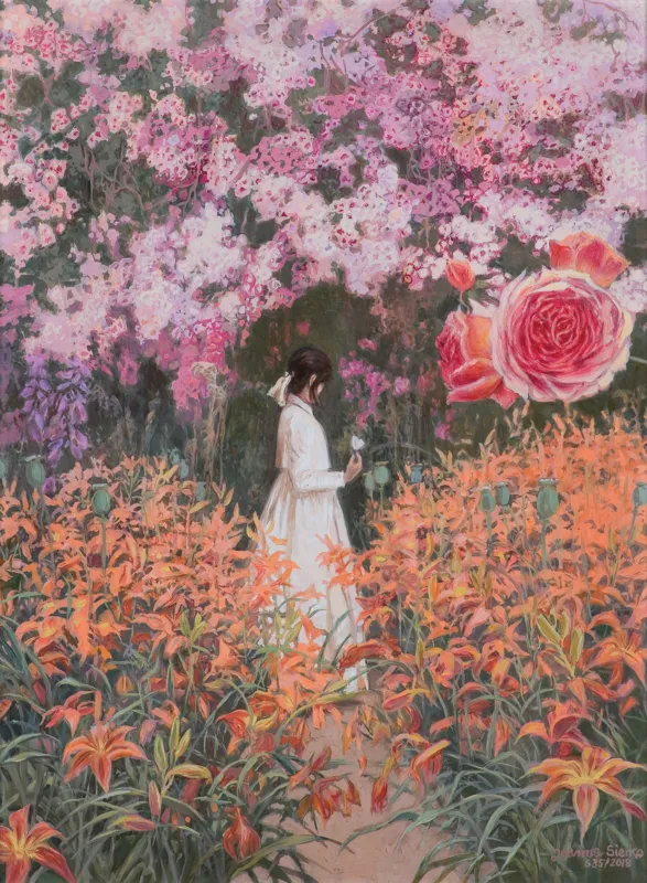 sygn. na odwr. na środkowej listwie krosna: JOANNA SIERKO - FILIPOWSKA - “W OGRODZIE U PANA MONETA”- 635/2018 r