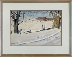 Na odwrocie pejzaż zimowy z zabudowaniami; ponadto p.d. napis (ołówkiem): Chantacler [sic!], near St. Adele.