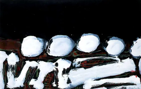 gwasz, papier, 28,5 x 44,5 cm (w świetle passe-partout) sygnowany długopisem p.d.: Dominik na odwrocie nalepka z biogramem artysty w języku angielskim