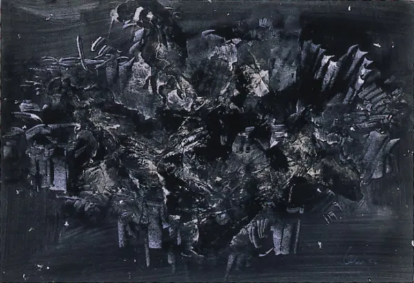 tusz, pędzel, dekalkomania, collage, papier milimetrowy; sygnowany ołówkiem p.d.: Lenica