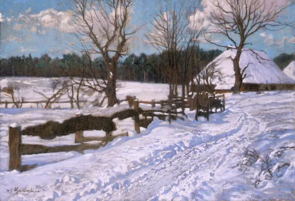Na krosnach cztery stemple krakowskiego składu przyborów malarskich ISKRA / KARMAŃSKI