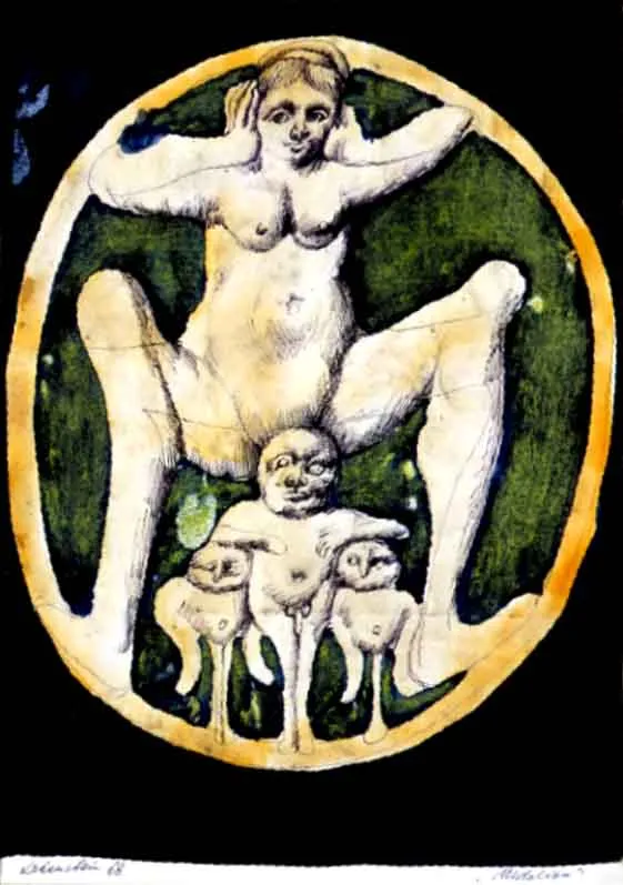 sygnowany długopisem pod kadrem rysunku l.: Lebenstein 68, p.: „Medalion"