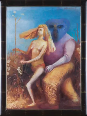 napisy na krosnach p.g.: 72 x 52 [obwiedzione owalem], p.: „Potwór z głową w kształcie serca“, p.d.: 1998