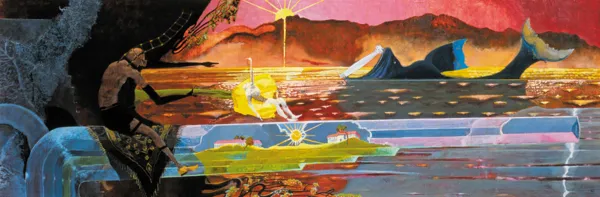 sygnowany na odwr. l.g.: J. Baszkowski | "ROMANTYCY GRENLANDZCY" | 60 x 180 cm; olej; 1998