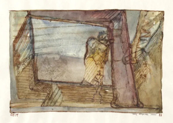 14,9 x 20,9 cm (w świetle passe-partout) sygn. tuszem l.d.: 0811, oł. p.d.: Jerzy Stajuda 1975, obok tuszem znak chiński