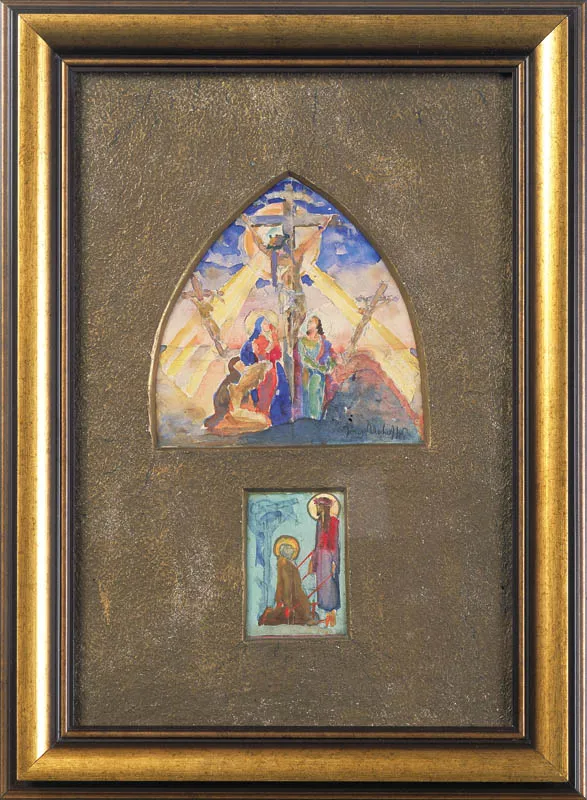 Oba szkice (współoprawne w introligatorskie passe-partout) pomyślane były zapewne jako wstępne projekty polichromii bądź witraży. Wnosząc z ich kolorytu, syntetycznej, uproszczonej kompozycji