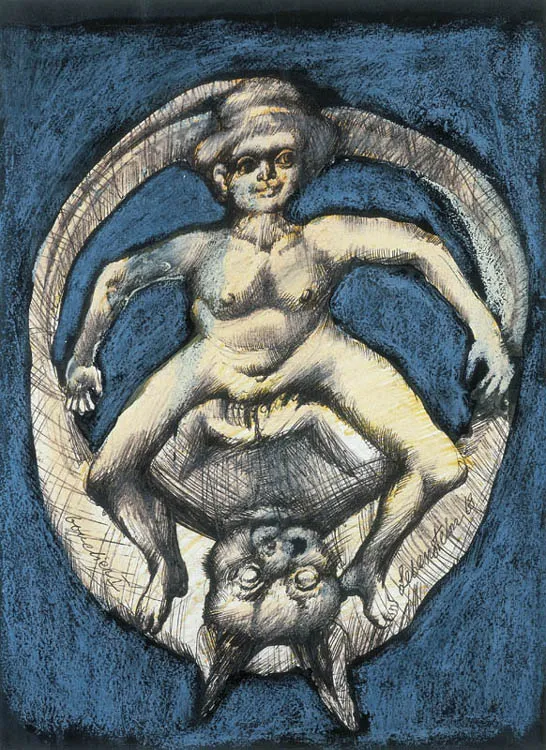 długopis, tusz pióro, pędzel, pastel, papier - 35 cm x 25.8 cm