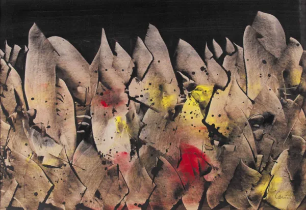 sygn. oł. p.d.: Lenica, na odwr. p.g. wycięte okienko ukazujące sygnaturę oł.: A. Lenica | Warszawa | 1964 | Pejzaż automatyczny 11