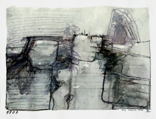 sygn tuszem l.d.: 1909, oł. p.d.: Jerzy Stajuda 1979 [obok tuszem znak chiński]