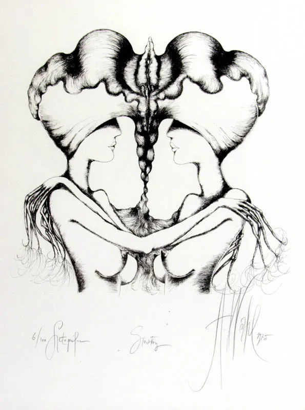 sygn. oł. pod ryc. l.: 6/100 Litografia, śr.: „Siostry”, p.: A. Wahl 1975
