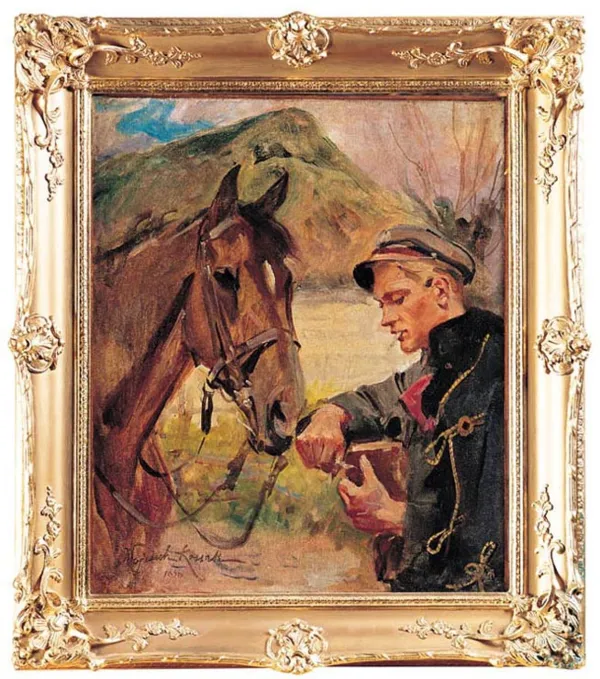Motyw ułana krojącego chleb i karmiącego konia należał do tematów cieszących się powodzeniem wśród wielbicieli malarstwa Kossaka, stąd też artysta powtarzał go w kilkakrotnie, w zbliżonych wersjach kompozycyjnych.
