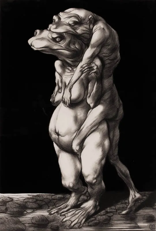 kredka czarna, tusz pędzel, papier krem. - 63.6 cm x 43 cm