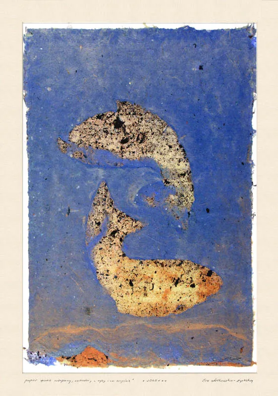 sygn. na passe-partout l.d.: papier ręcznie czerpany, wschodni, „ryby – na szczęście”, śr.: *2005***, p.: Ewa Latkowska-Żychska