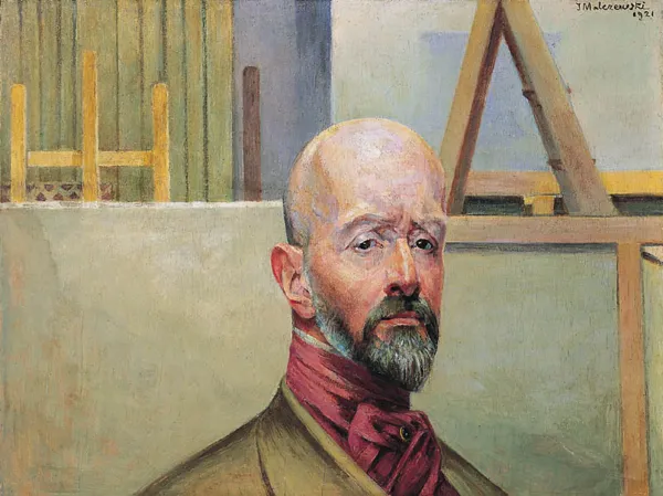 s. 279, nr 784). Przede wszystkim jednak Mój portret, datowany przez artystę na rok 1921, charakterystyczny jest dla – zauważalnej w dziele Malczewskiego na początku lat dwudziestych – tendencji do pewnego uproszczenia i zgeometryzowania kompozycji, połączonego nie raz z uspokojeniem i wyciszeniem koloru. Tu jako przykład należy wskazać raz jeszcze cytowane wyżej Przekazanie palety czy znany Portret żony z roku 1920 (wł. Muzeum Okręgowe w Bydgoszczy; patrz: A.Ławniczakowa, Jacek Malczewski, Kraków 1995, il. s. 127). Tendencja do uproszczenia i geometryzacji pojawia się też wielokrotnie w obrazach rodzajowych i kompozycjach krajobrazowych malowanych przez artystę w Lusławicach.