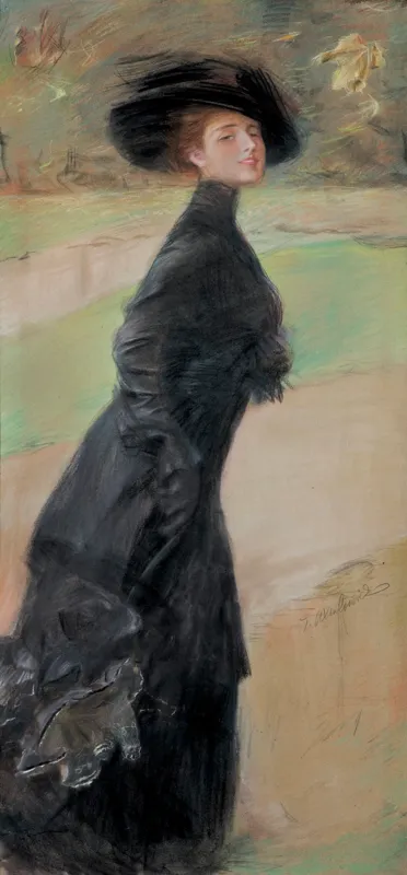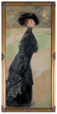 Teodor Axentowicz wsławił się jako twórca pięknych, eterycznych portretów kobiecych. Perfekcyjnie wykonane w technice pastelu portrety dam z arystokratycznych sfer, mieszczańskich salonów oraz kręgów artystycznych były głównym tematem jego twórczości. Wykorzystując atrybuty kobiecości – tj. suknie, zwiewne materiały, kwia...