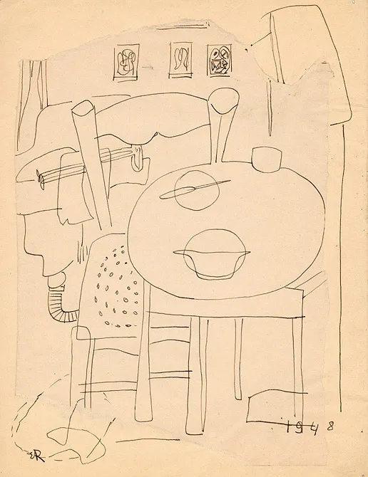 sygn. l.d.: ER, p.d.: 1948, na odwr. oł. p.: 27 x 20’5 | Wnętrze | E. Rosenstein | 1948