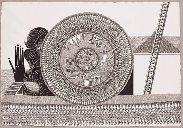 sygn. na obrzeżu koła w centrum kompozycji: ZBIGNIEWMAKOWSKIFUITHIC.XI.1966. WARSZAWA