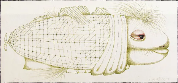 tusze barwne, papier krem. żeberk. - 23.4 cm x 50.2 cm
