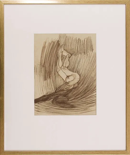 kredka sepiowa, papier beżowy żeberk - 31.5 cm x 23.8 cm