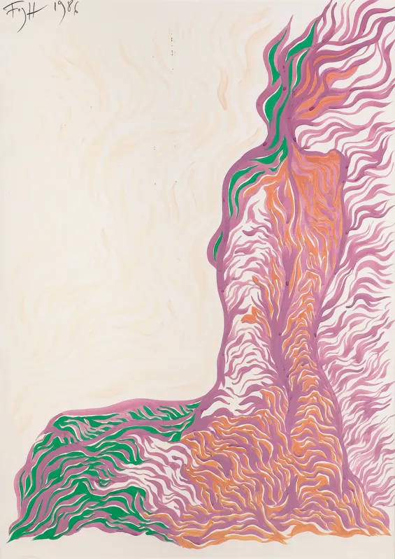 sygn. czerwonym flam. na odwr. p.d.: A. Fogtt | postać. | tempera | 1986 R. | 69,5 x 49., niżej owalna pieczęć autorska