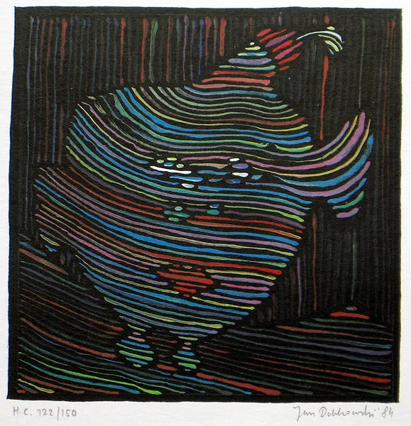 serigrafia barwna, papier, 10,1 x 10 cm sygn. oł. pod ryc. l.: H.C. 122/150, p.: Jan Dobkowski’84