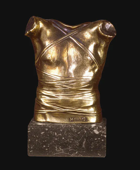 Miniatura rzeźby Pancerz (Cuirasse) z 1978, brąz, wys. 273 cm, wzmiankowanej i reprodukowanej w albumie: Igor Mitoraj. Sculpture, [wyd.] Art-Objet, Paris 1988, s. 65.