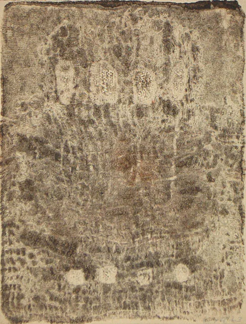 monotypia [odcisk tkaniny] w brązach, papier krem - 20.5 cm x 16 cm