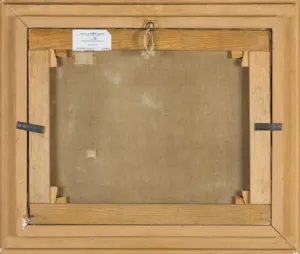 na odwrocie na krośnie numery ołówkiem odnoszące się do jego wymiarów; ponadto na górnej listwie nalepka aukcyjna