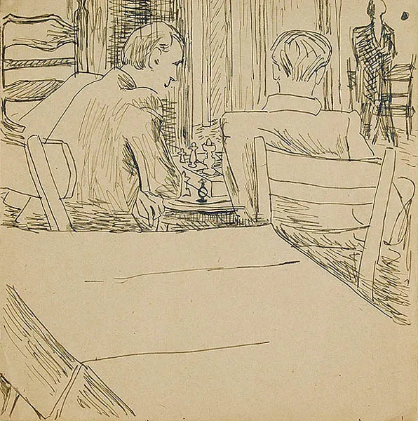 Szachiści we wnętrzu, ok. 1945