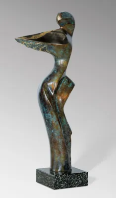brąz patynowany i polerowany, podstawa marmur - 63 x 24cm