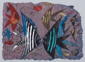 gwasz, tusz pióro, pastel, akryl, papier czerpany - 31 x 42.5cm