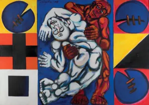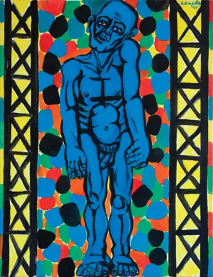 Marian Czapla (Gacki na Kielecczyźnie 28 VII 1946 - Warszawa 12 I 2016) studiował na Wydziale Malarstwa ASP w Warszawie w latach 1966-1972. Uzyskał dyplom w pracowni prof. Stefana Gierowskiego. W 1972 podjął pracę pedagogiczną w macierzystej uczelni. Od 1990 był profesorem, prowadził własną pracownię malarstwa. W latach 1974-1979 był członkiem grupy „Symplex S4“, którą tworzyło grono młodych absolwentów warszawskiej ASP, zainteresowanych możliwością kontynuowania tradycji polskiego koloryzmu z jednej, unizmu Władysława Strzemińskiego z drugiej strony. Początkowo tworzył abstrakcyjne kompozycje budowane z barwnych, zamaszyście kładzionych smug i plam. Od końca lat 70. w jego malarstwie przeważyła figuracja. Wyróżniającym się wątkiem twórczości Czapli były tematy i odniesienia religijne. Zainteresowania te pozostały aktualne w jego sztuce w latach 80., kiedy połączył je z tematyką aktualną (cykl poświęcony górnikom z „Wujka“). W pracach z lat 90. (cykle „Upadek“, „Ecce Homo“ i in.) artysta malował monumentalne figury o mocnej tektonice, podkreślonej dodatkowo zdecydowanymi barwami i konturami, ujęte w dynamicznych ruchach i skrętach ciała. Umieszczone zazwyczaj na płaskich tłach jednolitego koloru, w umownej przestrzeni, zdają się zmagać z ograniczającym je kadrem obrazu. W 2002 roku z okazji 30-lecia pracy twórczej Mariana Czapli Muzeum Narodowe w Kielcach przygotowało wystawę jego prac, której towarzyszył naukowo opracowany katalog.