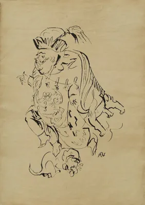 atrament sepiowy, pióro, lawowanie, papier krem - 19.5 x 28.5cm
