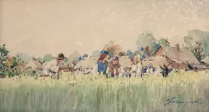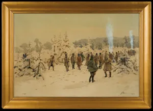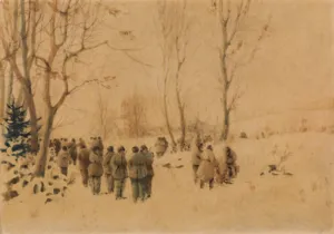 Stanisław Gibiński (Rzeszów 1882 – Katowice 1971) od wczesnej młodości pracował na kolei, początkowo w Rzeszowie, następnie w Krakowie, gdzie równocześnie mógł podjąć naukę w Akademii Sztuk Pięknych, prawdopodobnie jako wolny słuchacz. W czasie I wojny światowej służył w II Brygadzie Legionów dowodzonej przez J. Hallera i odbył kampanię w Karpatach, walcząc pod Rafajłową, Mołodecznem, Przełęczą Pantyrską. Po wojnie nadal pracował na kolei, łącząc pracę zawodową z twórczością plastyczną. Był malarzem akwarelistą; malował pejzaże, wiejskie sceny rodzajowe, rybaków czy polowania, które najczęściej przedstawiał w śnieżnym, zimowym pejzażu. Sam często uczestniczył w polowaniach i ten temat zn...