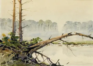 Stanisław Gibiński (Rzeszów 1882 – Katowice 1971) od wczesnej młodości pracował na kolei, początkowo w Rzeszowie, następnie w Krakowie, gdzie równocześnie mógł podjąć naukę w Akademii Sztuk Pięknych, prawdopodobnie jako wolny słuchacz. W czasie I wojny światowej służył w II Brygadzie Legionów dowodzonej przez J. Hallera i odbył kampanię w Karpatach, walcząc pod Rafajłową, Mołodecznem, Przełęczą Pantyrską. Po wojnie nadal pracował na kolei, łącząc pracę zawodową z twórczością plastyczną. Był malarzem akwarelistą; malował pejzaże, wiejskie sceny rodzajowe, rybaków czy polowania, które najczęściej przedstawiał w śnieżnym, zimowym pejzażu. Sam często uczestniczył w polowaniach i ten temat znał doskonale. Malował też moczary, rozlewiska, krajobrazy jesienne. W jego malarstwie wyraźnie widoczne są inspiracje sztuką Fałata, ale też Wyczółkowskiego i malarzy krakowskiej szkoły pejzażu. Artysta wielokrotnie uczestniczył w wystawach krakowskiego TPSP, a po 1926 także w wystawach „Niezależnych“. Wystawiał też i w innych miastach, a jego sztuka cieszyła się znacznym powodzeniem
