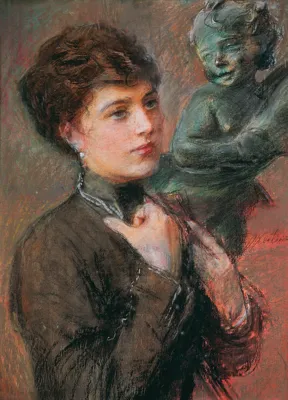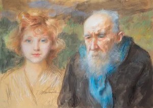 Teodor Axentowicz (Braszów w Siedmiogrodzie 1859 - Kraków 1938) – malarz, pastelista, litograf – był jednym z najbardziej znanych i cenionych malarzy polskich. Kształcił się w Akademii Sztuk Pięknych w Monachium pod kierunkiem Gabriela Hackla, Aleksandra Wagnera, Gyuli Benczúra. Studia uzupełniał w Paryżu, gdzie następnie przebywał przez lat kilkanaście. Brał udział w paryskich Salonach; w 1890 otrzymał członkostwo Société Nationale des Beaux-Arts. W tym czasie wielokrotnie wyjeżdżał również do Londynu. W 1895 powrócił do kraju i zamieszkał na stałe w Krakowie, powołany na profesora tamtejszej Szkoły Sztuk Pięknych (od 1900 Akademii). W uczelni tej nauczał nieprzerwanie do 1934, dwukrotni...