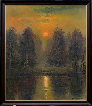 Wiktor Korecki (Kamieniec Podolski 1890 - Komorów k. Warszawy 1980) - malarz pejzażysta - gimnazjum ukończył w Kijowie, tam też studiował w Szkole Rysunkowej Aleksandra Muraszki. Po studiach wrócił do Kamieńca Podolskiego, skąd w roku 1921 wyjechał do Warszawy. Tu miał pracownię na rogu ulic Tamki i Cichej. Niestety zgromadzone tam obrazy spłonęły w czasie powstania 1944 roku. Po powstaniu artysta przebywał w obozie w Pruszkowie skąd trafił do obozu pracy w Lipsku. Do kraju powrócił w roku 1946 i zamieszkał w Komorowie pod Warszawą, a później w Milanówku. Jego nastrojowe krajobrazy emanujące spokojem i pogodą cieszyły się zawsze dużą popularnością. Korecki najczęściej malował pejzaże zimo...
