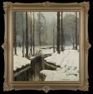 Wiktor Korecki (Kamieniec Podolski 1890 - Komorów k. Warszawy 1980) - malarz pejzażysta - gimnazjum ukończył w Kijowie, tam też studiował w Szkole Rysunkowej Aleksandra Muraszki. Po studiach wrócił do Kamieńca Podolskiego, skąd w roku 1921 wyjechał do Warszawy. Tu miał pracownię na rogu ulic Tamki i Cichej. Niestety zgromadzone tam obrazy spłonęły w czasie powstania 1944 roku. Po powstaniu artysta przebywał w obozie w Pruszkowie skąd trafił do obozu pracy w Lipsku. Do kraju powrócił w roku 1946 i zamieszkał w Komorowie pod Warszawą, a później w Milanówku. Jego nastrojowe krajobrazy emanujące spokojem i pogodą cieszyły się zawsze dużą popularnością. Korecki najczęściej malował pejzaże zimo...