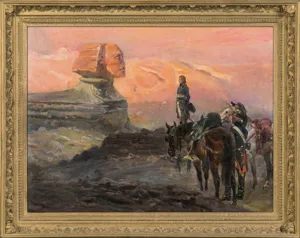 Wojciech Kossak (Paryż 1856 - Kraków 1942 ) – powszechnie znany malarz, postrzegany przede wszystkim jako świetny batalista. Syn i uczeń Juliusza Kossaka kształcił się w krakowskiej Szkole Sztuk Pięknych, w Akademii monachijskiej oraz w Paryżu. W latach 1895-1902 przebywał głównie w Berlinie, pracując dla cesarza Wilhelma II. Wiele podróżował, m.in. do Hiszpanii i Egiptu, gdzie wykonywał szkice do zamierzonych panoram. W późniejszych latach kilkakrotnie wyjeżdżał do Stanów Zjednoczonych wykonując zamówienia portretowe. W 1913 był mianowany profesorem warszawskiej Szkoły Sztuk Pięknych. W latach I wojny światowej pełnił służbę wojskową. Był współautorem panoram: „Racławice” (1893-1894), „B...