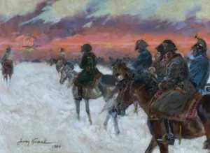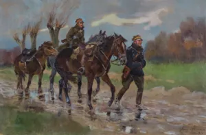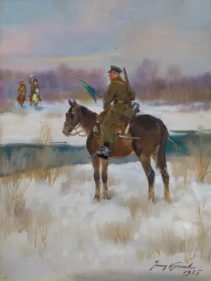 Jerzy Kossak (Kraków 1886 - Kraków 1955)- syn Wojciecha, wnuk Juliusza Kossaków - od wczesnego dzieciństwa malował pod kierunkiem ojca i dziadka. Kontynuator i naśladowca ich sztuki tworzył sceny batalistyczne, historyczne i rodzajowe z wszechobecnym motywem konia. Malował obrazy z powstania listopadowego, wojen napoleońskich oraz wiele scen z wojny 1920 roku. Najbardziej znaną jego kompozycją tego rodzaju był Cud nad Wisłą. Malował też liczne Pogonie i Pościgi ułanów za kozakami, Napady wilków, Polowania i Wesela. Tematyka tych prac sprawia, że stale cieszą się zainteresowaniem zbieraczy i publiczności, zawsze tłumnie odwiedzającej wystawy malarstwa Kossaków.