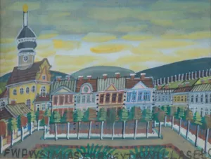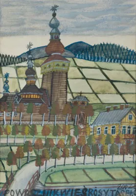 Nikifor (właściwie Epifaniusz Drowniak, od 1962 Nikifor Krynicki; Krynica ok. 1895 - Krynica 1968) - Łemek, znany malarz naiwny z Krynicy, samouk. Cierpiał na zaburzenia słuchu i mowy, nie uczył się nigdy w żadnej szkole, nie umiał pisać ani czytać. Jego prawdziwą pasją i sposobem na porozumienie ze światem było malarstwo. Malować zaczął wcześnie - najdawniejsze znane prace artysty pochodzą jeszcze sprzed roku 1920. Malował akwarelą, używając przy tym także ołówka. Wykorzystywał każdy dostępny kawałek papieru, okładki zeszytów, opakowania papierosów. Tworzył całe serie obrazków - wzruszająco naiwnych przedstawień architektury, pejzażu, postaci świętych, portretów. Swoje prace podpisywał c...