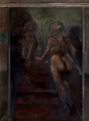 Jan Lebenstein (Brześć Litewski 1930 - Kraków 1999) w latach 1948-1954 studiował malarstwo w ASP w Warszawie pod kierunkiem prof. Eugeniusza Eibischa i Artura Nachta-Samborskiego. W 1955 wziął udział w wystawie w warszawskim Arsenale. Zaprzyjaźniony w czasie studiów z Mironem Białoszewskim, swą pierwszą wystawę indywidualną pokazał w 1956 w Teatrze na Tarczyńskiej. W 1959 zdobył Grand Prix de la Ville de Paris na I Biennale Młodych w Paryżu i w tym roku przeniósł się na stałe do Paryża. Po seriach "figur kreślonych" (na papierze milimetrowym) i "figur hieratycznych" z lat 1955-1958 maluje cykl "figur osiowych" (1958-1962), które wystawia w Paryżu i USA. Równolegle w 1960 zaczyna rysowane "karnety", rodzaj dziennika, który w przyszłości dostarczy motywów wykorzystanych w obrazach. W latach 1964-1965 maluje "Bestiarium", cykl fakturowych, archaizowanych stworów przypominających prehistoryczne wykopaliska. Bezpośrednio po nich wprowadza do swych obrazów postaci ludzkie i fantastyczne, odgrywające sceny ni to mitologiczne, ni to ze snu, często przesycone erotyką. W 1970 projektuje witraże dla Centre du Dialogue w Paryżu. W W 1971 otrzymuje obywatelstwo francuskie 1974 powstają gwasze inspirowane Folwarkiem zwierzęcym George'a Orwella. W latach 1976-1989 tworzy wyłącznie w technice gwaszu i pastelu, podejmując tematykę mitologiczną i zaczerpniętą z Biblii: cykle ilustracji do Księgi Hioba (wyd. 1979) i do Apokalipsy (wyd. 1986) w nowych przekładach Czesława Miłosza. W 1989 powraca do malarstwa olejnego (cykl "Pergamon"). Artysta otrzymał m. in. nagrodę Fundacji im. Alfreda Jurzykowskiego w 1976, Nagrodę Muzeum Archidiecezji Warszawskiej w 1985, Nagrodę im. Jana Cybisa w 1987.