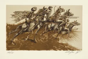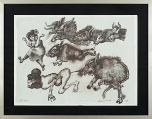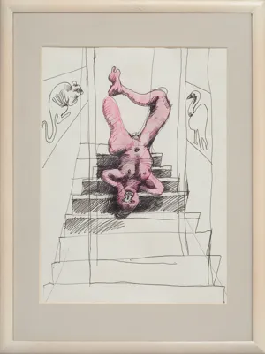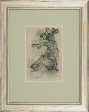 Jan Lebenstein (Brześć Litewski 1930 - Kraków 1999) w latach 1948-1954 studiował malarstwo w ASP w Warszawie pod kierunkiem prof. Eugeniusza Eibischa i Artura Nachta-Samborskiego. W 1955 wziął udział w wystawie w warszawskim Arsenale. Zaprzyjaźniony w czasie studiów z Mironem Białoszewskim, swą pierwszą wystawę indywidualną pokazał w 1956 w Teatrze na Tarczyńskiej. W 1959 zdobył Grand Prix de la Ville de Paris na I Biennale Młodych w Paryżu i w tym roku przeniósł się na stałe do Paryża. Po seriach "figur kreślonych" (na papierze milimetrowym) i "figur hieratycznych" z lat 1955-1958 maluje cykl "figur osiowych" (1958-1962), które wystawia w Paryżu i USA. Równolegle w 1960 zaczyna rysowane "karnety", rodzaj dziennika, który w przyszłości dostarczy motywów wykorzystanych w obrazach. W latach 1964-1965 maluje "Bestiarium", cykl fakturowych, archaizowanych stworów przypominających prehistoryczne wykopaliska. Bezpośrednio po nich wprowadza do swych obrazów postaci ludzkie i fantastyczne, odgrywające sceny ni to mitologiczne, ni to ze snu, często przesycone erotyką. W 1970 projektuje witraże dla Centre du Dialogue w Paryżu. W W 1971 otrzymuje obywatelstwo francuskie 1974 powstają gwasze inspirowane Folwarkiem zwierzęcym George'a Orwella. W latach 1976-1989 tworzy wyłącznie w technice gwaszu i pastelu, podejmując tematykę mitologiczną i zaczerpniętą z Biblii: cykle ilustracji do Księgi Hioba (wyd. 1979) i do Apokalipsy (wyd. 1986) w nowych przekładach Czesława Miłosza. W 1989 powraca do malarstwa olejnego (cykl "Pergamon"). Artysta otrzymał m. in. nagrodę Fundacji im. Alfreda Jurzykowskiego w 1976, Nagrodę Muzeum Archidiecezji Warszawskiej w 1985, Nagrodę im. Jana Cybisa w 1987.
