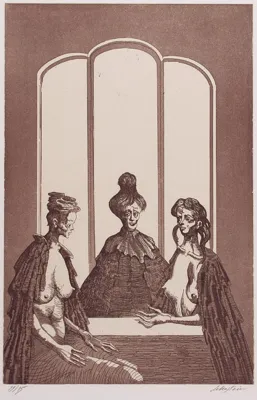 Trzy postaci za stołem