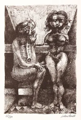 Jan Lebenstein (Brześć Litewski 1930 - Kraków 1999) w latach 1948-1954 studiował malarstwo w ASP w Warszawie pod kierunkiem prof. Eugeniusza Eibischa i Artura Nachta-Samborskiego. W 1955 wziął udział w wystawie w warszawskim Arsenale. Zaprzyjaźniony w czasie studiów z Mironem Białoszewskim, swą pierwszą wystawę indywidualną pokazał w 1956 w Teatrze na Tarczyńskiej. W 1959 zdobył Grand Prix de la Ville de Paris na I Biennale Młodych w Paryżu i w tym roku przeniósł się na stałe do Paryża. Po seriach "figur kreślonych" (na papierze milimetrowym) i "figur hieratycznych" z lat 1955-1958 maluje cykl "figur osiowych" (1958-1962), które wystawia w Paryżu i USA. Równolegle ...
