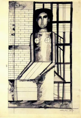 Jan Lebenstein (Brześć Litewski 1930 - Kraków 1999) w latach 1948-1954 studiował malarstwo w ASP w Warszawie pod kierunkiem prof. Eugeniusza Eibischa i Artura Nachta-Samborskiego. W 1955 wziął udział w wystawie w warszawskim Arsenale. Zaprzyjaźniony w czasie studiów z Mironem Białoszewskim, swą pierwszą wystawę indywidualną pokazał w 1956 w Teatrze na Tarczyńskiej. W 1959 zdobył Grand Prix de la Ville de Paris na I Biennale Młodych w Paryżu i w tym roku przeniósł się na stałe do Paryża. Po seriach "figur kreślonych" (na papierze milimetrowym) i "figur hieratycznych" z lat 1955-1958 maluje cykl "figur osiowych" (1958-1962), które wystawia w Paryżu i USA. Równolegle ...