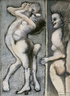tusz gwasz, pastel, ołówek, papier kremowy - 50.5 x 37cm