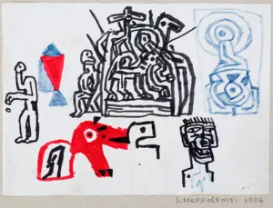 Stanisław Młodożeniec (Warszawa 1953, mieszka w Nowym Jorku) studiował na Wydziale Malarstwa ASP w Warszawie w latach 1972-1978. Dyplom uzyskał w pracowni prof. Jacka Sienickiego. Do 1981 zorganizował trzy wystawy indywidualne w Warszawie i Poznaniu, wziął też udział w kilku wystawach zbiorowych. W okresie stanu wojennego uczestniczył w ruchu wystaw niezależnych w kościołach, jak dwie edycje wystawy „Świadectwo obecności”, Warszawa 1982 i 1983. W 1983 zamieszkał na stałe w Nowym Jorku. Odtąd wystawia w tamtejszych galeriach, uczestniczy też w życiu artystycznym Polonii. W 1991 wziął udział w wystawie „Jesteśmy” w warszawskiej Zachęcie, prezentującej twórczość polskich artystów osiadłych za granicą. Od początku jego malarstwo utrzymane było w stylistyce neoekspresjonistycznej, co stawia go w rzędzie prekursorów tego nurtu w Polsce. W swych obrazach swobodnie łączy motywy czerpane z kultury masowej i powszedniego życia miasta, tworząc rodzaj psychologicznego portretu zbiorowego współczesnych jego mieszkańców. Obok malarstwa ważnym wątkiem jego twórczości jest rysunek, nacechowany podobnym jak w obrazach nerwowym, pospiesznym gestem ręki.