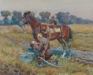 Stanisław Bagieński (Warszawa 1876 - Warszawa 1948) - popularny malarz-batalista, ilustrator - naukę malarstwa rozpoczął pod kierunkiem ojca Feliksa Bagieńskiego, a następnie uczył się w u Wojciecha Gersona w warszawskiej Klasie Rysunkowej. Studia kontynuował w Akademii w Monachium (1901-1903) oraz w Paryżu. Stale mieszkał w Warszawie, gdzie, począwszy od r. 1900, wielokrotnie wystawiał w Towarzystwie Zachęty Sztuk Pięknych. Malował sceny rodzajowe, pejzaże, a przede wszystkim obrazy batalistyczne gloryfikujące bohaterstwo polskiego żołnierza. Jako ilustrator współpracował z warszawskimi czasopisma-mi „Tygodnikiem Ilustrowanym”, „Światem”, „Biesiadą Literacką”. Ilustrował też książki, m....